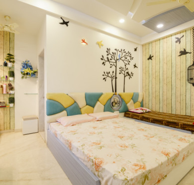Flowers on wardrobe shutter adds glam.